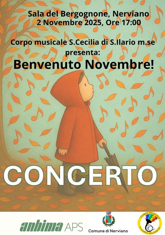 Domenica 2 novembre alle ore 17.00 presso la sala Bergognone il Corpo musicale S.Cecilia di S.Ilario si esibirà nel concerto BENVENUTO NOVEMBRE