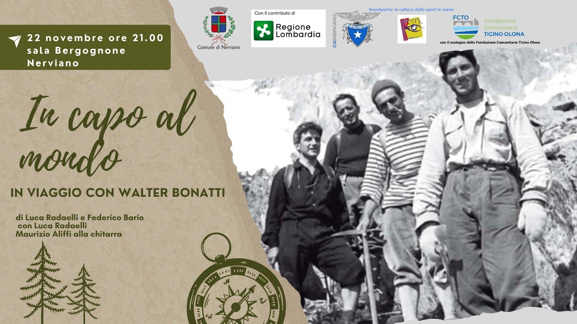 Sabato 22 novembre alle 21.00 in sala Bergognone è di scena la passione per la montagna con lo spettacolo IN CAPO AL MONDO - IN VIAGGIO CON WALTER BONATTI.